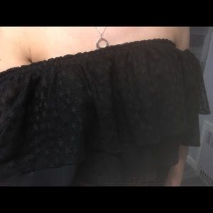 Zara starry printed top with tier ruffle detailing- can be worn off the shoulder or on. More sheer at bottom, so can throw a cami underneath or not to show the nice star detail! Only worn once, size S, very comfortable.