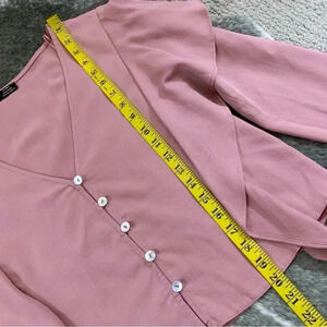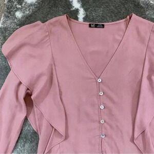 Here’s a gorgeous ruffled detailing top by Zara. Size medium and in great shape. Love the dusty rose color pink. Soft and comfy and perfect for everyday wear! :)