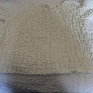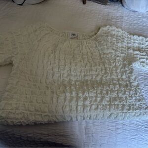 Elegant off white blouse with ruffled details. Ideal for versatile styling.