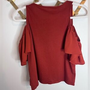 Zara Rust Cold Shoulder Flutter Sleeve Top Small