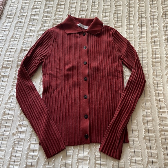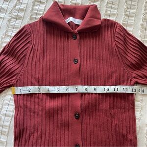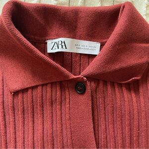 Zara Rust Ribbed Button-Up Cardigan