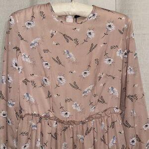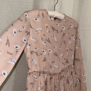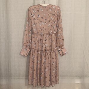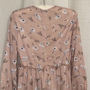 Zara S Blush Pink White Blue Floral Long Sleeve Back Zip Tiered Dress