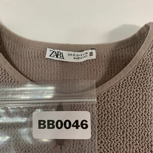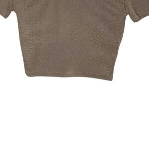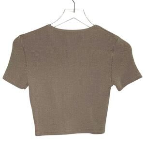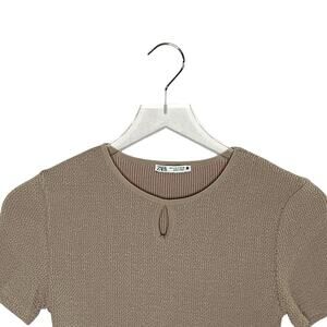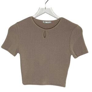 Zara S Taupe Keyhole Textured Crop Top Stretch Short Sleeve Knit