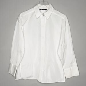 Zara S Womens Jewel Button Oversized Button Front Shirt Long Sleeve *flaw
