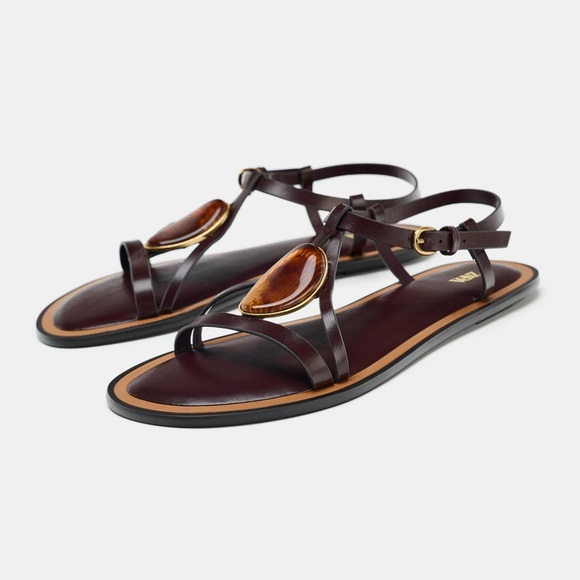 Zara SANDALS WITH METALLIC APPLIQUÉ Sz 42