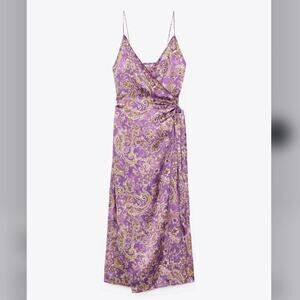 Zara SATIN EFFECT PRINT DRESS Size Small