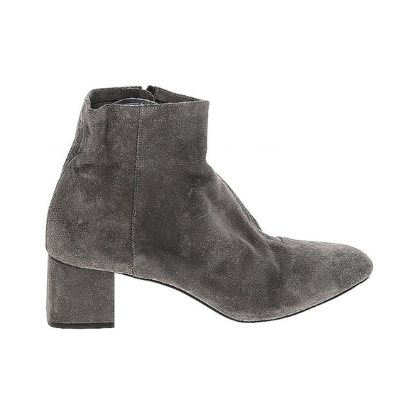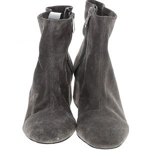 Sued bootie 2 inch chunky heel, side zipper.