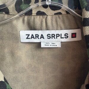 Zara SRPLS Long Sleeve Button Up Animal Print Cotton Blend Jacket Women's Size L