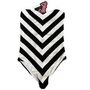 Strapless swimsuit. Textured fabric detail.