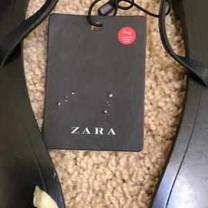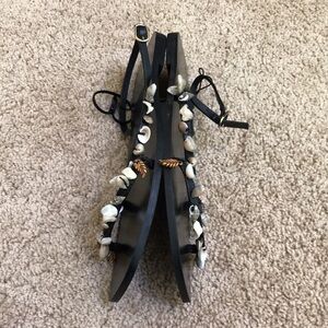 Zara SZ 38, black flat sandals with shells with ankle straps. Never worn. Has some storage scratches.