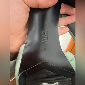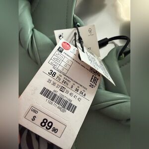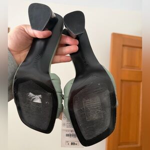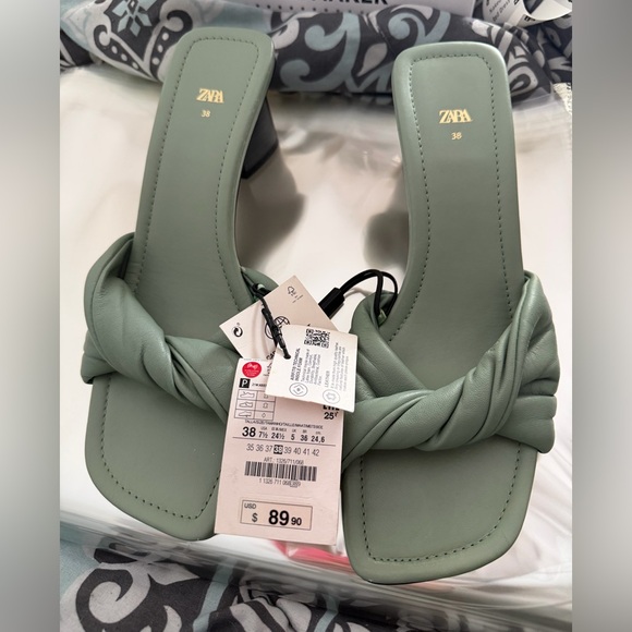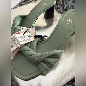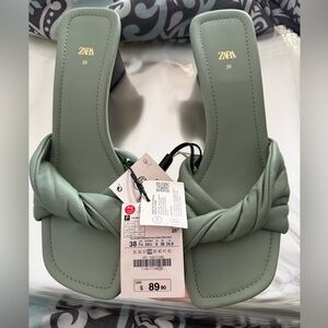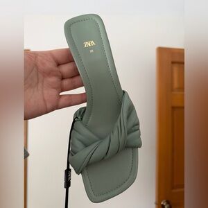 Chic Zara sandals in a soft sage green. Features a stylish twisted strap design! Perfect for any occasion.