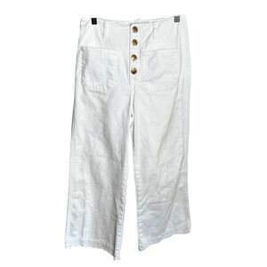 Zara Sailor Gold Button Wide Leg Embroidered Cropped White Patch Pocket Jeans 6