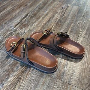 Zara sandal / size 40 / cognac brown / gold hardware / like new!