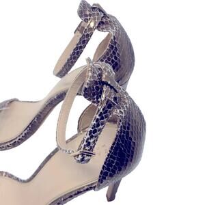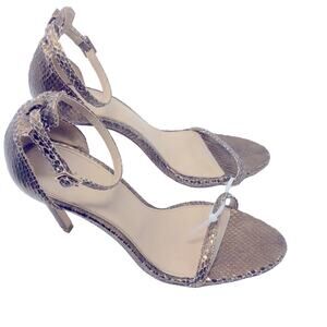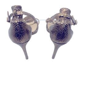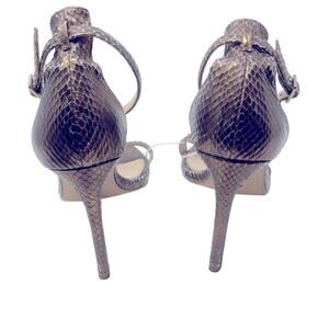Zara gold snakeskins strappy sandals. Signs of wear as pictured. Approximate 4” heel. Buckle strap closure.
