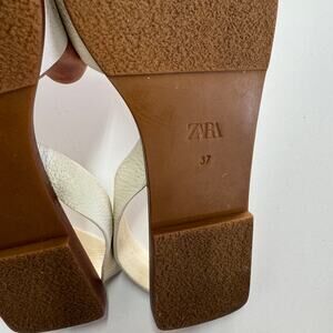 Zara Sandals Womens 37 6 White Cream Slingback Leather Flats