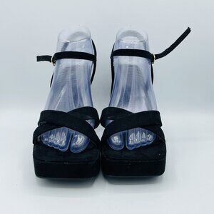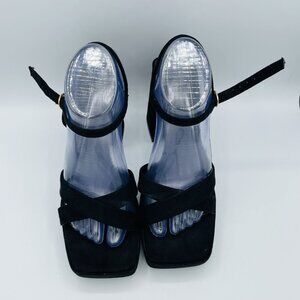 Zara Sandals Womens 8.5 /EU39 Black Y2K Square Ankle Strap Chunky Block Heel