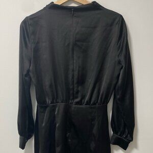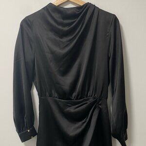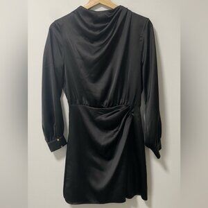 Zara Satin Black Draped Mini Dress Size XS — Gathered Waist Detail
