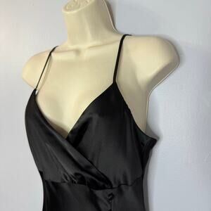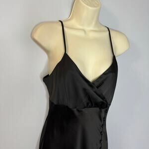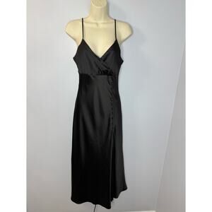 Zara Satin Button Slip Midi Dress Casual Wardrobe Black Women's S