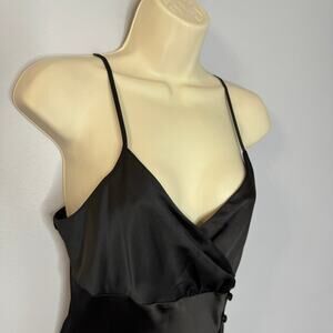 Zara Satin Button Slip V Neck Midi Dress Casual Wardrobe Black Women's