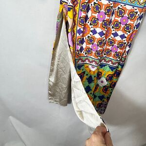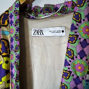 Zara Satin Effect Colorful Boho Floral Belted LS Kimono Duster Robe Size S