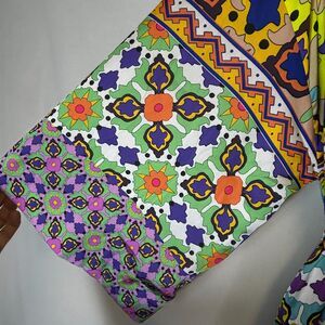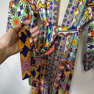 Tags: boho colorful multicolored geometric floral satin lined kimono bathrobe duster versatile sexy layering artsy unique glamorous resortwear