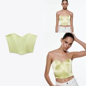 Zara Satin Effect Corset Style Bustier Cropped Tank Top Yellow
