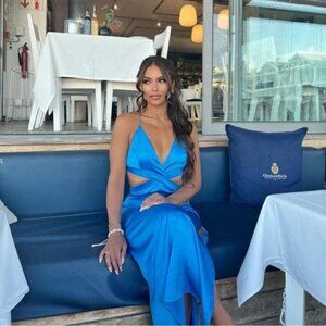 Zara Satin Effect Cut Out Maxi Dress Blue Bloggers Fav Size Small