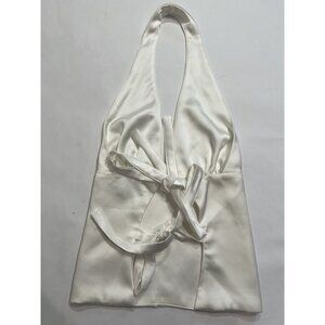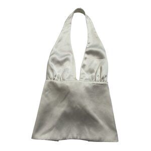 Description from retailer: Pronounced V-neck halter top. Open back with ties.
