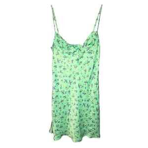 Zara Satin Effect Mint Green Floral Printed Dress Size Small