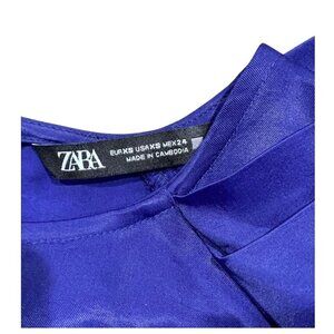 Zara Satin Effect Pleated Puff Shoulder Glossy Blouse | XS | Royal Blue/Purple