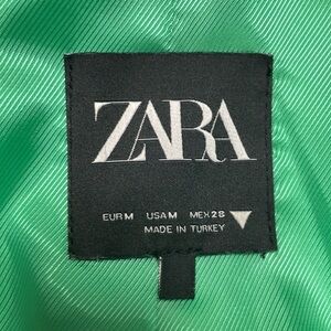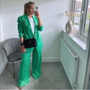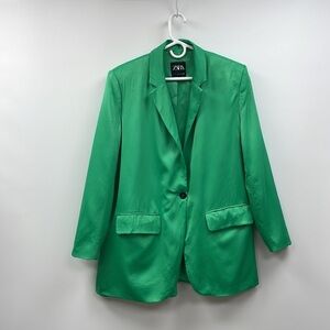 Zara Satin Effect Straight Cut Single Breasted Boyfriend Blazer Kelly Green Med