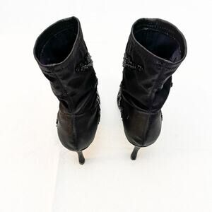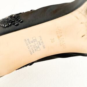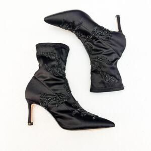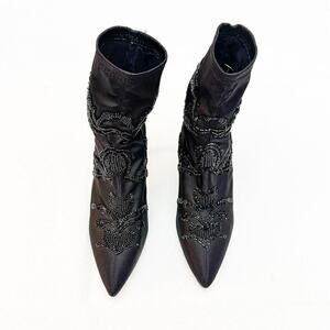 Zara Satin Embroidered Sequin Embellished Black Pointy Toe Booties Size 36