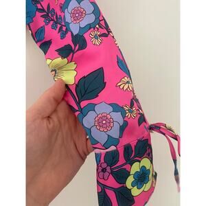 Zara Satin Floral Crop Top XS Flyaway Tie Front Bell Sleeve Pink