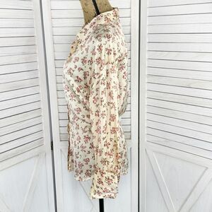 Zara Satin Floral Print Ruched Sides Blouse Cream Pink Small Button Front