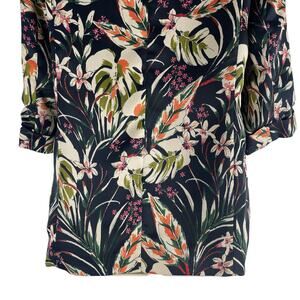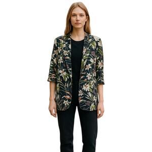Zara Satin Floral Printed Open Front Long Blazer Jacket Women Green