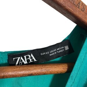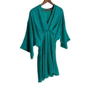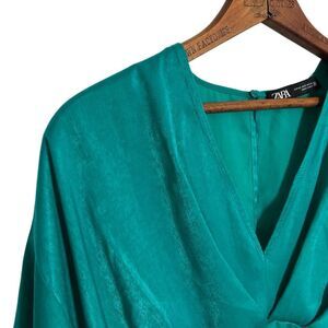 Zara Satin Full Sleeve Keyhole Back Playsuit Romper Mini Dress Teal Size XS