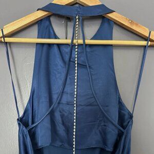 Zara Satin Halter Dress blue with Rhinestone in the back in S Only worn once