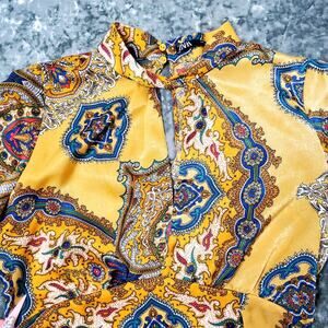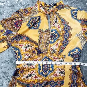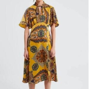 Zara Satin High Neck Paisley Yellow Midi Dress Size: S
