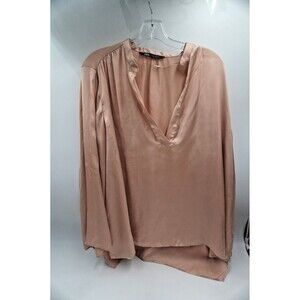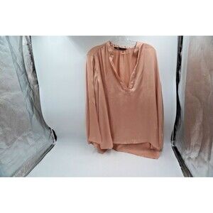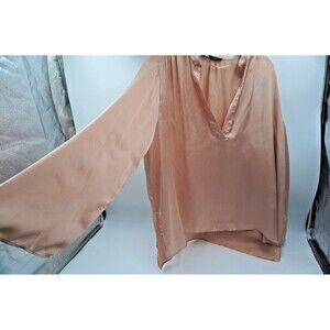 Pre-owned without tag Zara Satin Nude/Golden V-Neck Tunic Wide Sleeve Flowy Blouse Size Xl. This beautiful Zara tunic is a versatile and chic addition to any wardrobe. The flowy, satin-effect fabric gives it a luxurious feel, while the deep V-neckline and long, wide sleeves add a touch of modern elegance. The neutral nude-gold color is easy to style for various occasions, from a polished work look to a dressy evening out. The tunic has a relaxed, oversized fit that drapes beautifully for a flattering silhouette.