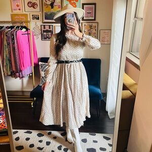 Zara Satin Polka Dot Long Sleeve Midi Dress