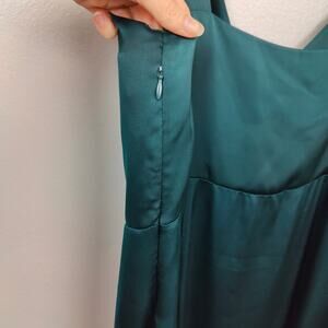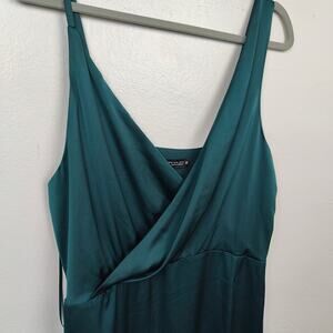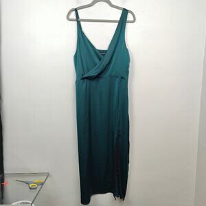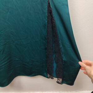 Zara Satin Wrap Slit Dress Womens XL Dark Green Lace Trim Romantic Vampire Goth