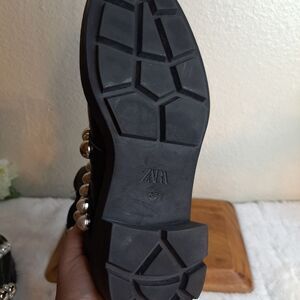 Zara Savida Ankle Boots with Pearl Straps Black Size 6 (36UK) w/1 flaw