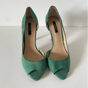 Zara Scalloped Green Peep Toe Sandal Heels, Size 38 🔴