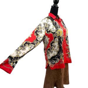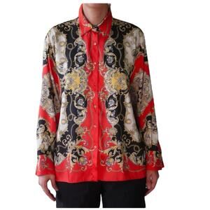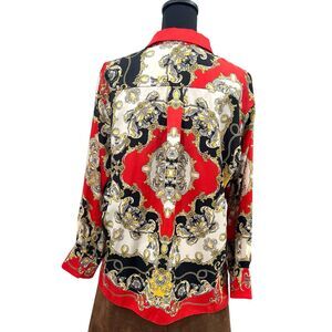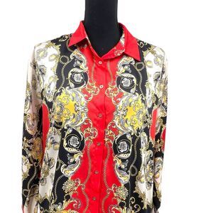 Zara Scarf Chain Paisley Print Satin Button Up Women’s Blouse Size Medium