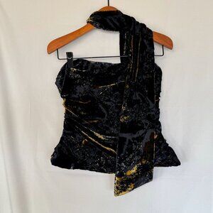Zara Scarf Corset Black Gold Burn Out Velvet Strapless Going Out Top Size Large