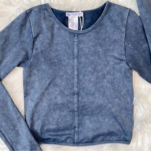 Zara Seamless Blue Washed Long Sleeve Fitted Top Small