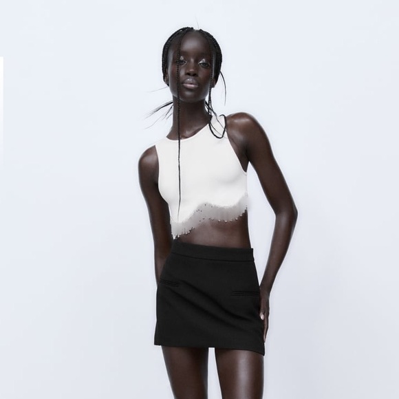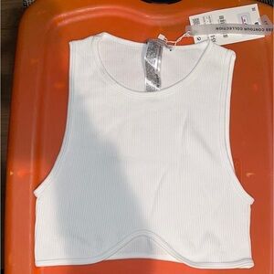White colored Zara Seamless Ribbed Contour Tank Top, brand new with tags, never been worn but to try on
