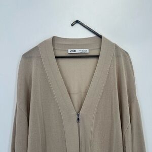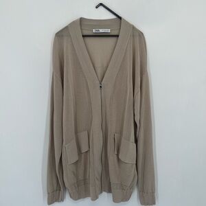 Zara Semi Sheer Knit Pocket Full Zip Bomber Cardigan