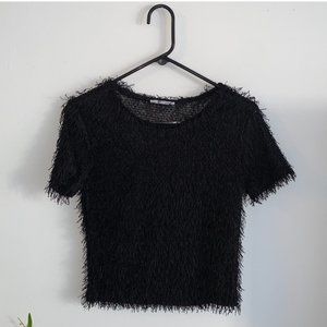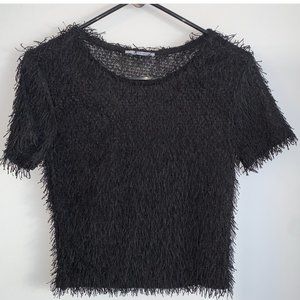 Super cute short sleeve Zara fuzzy top. Worn once, great condition. Material is moderately see through. Lightweight feel.