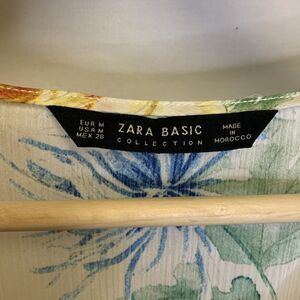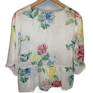 Zara Semi-Sheer Ivory Floral Lace Up Neckline Kimono Sleeve Peplum Top Size M